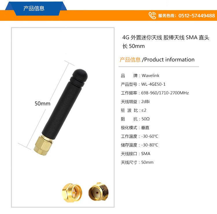 外置迷你 50mm膠棒天線