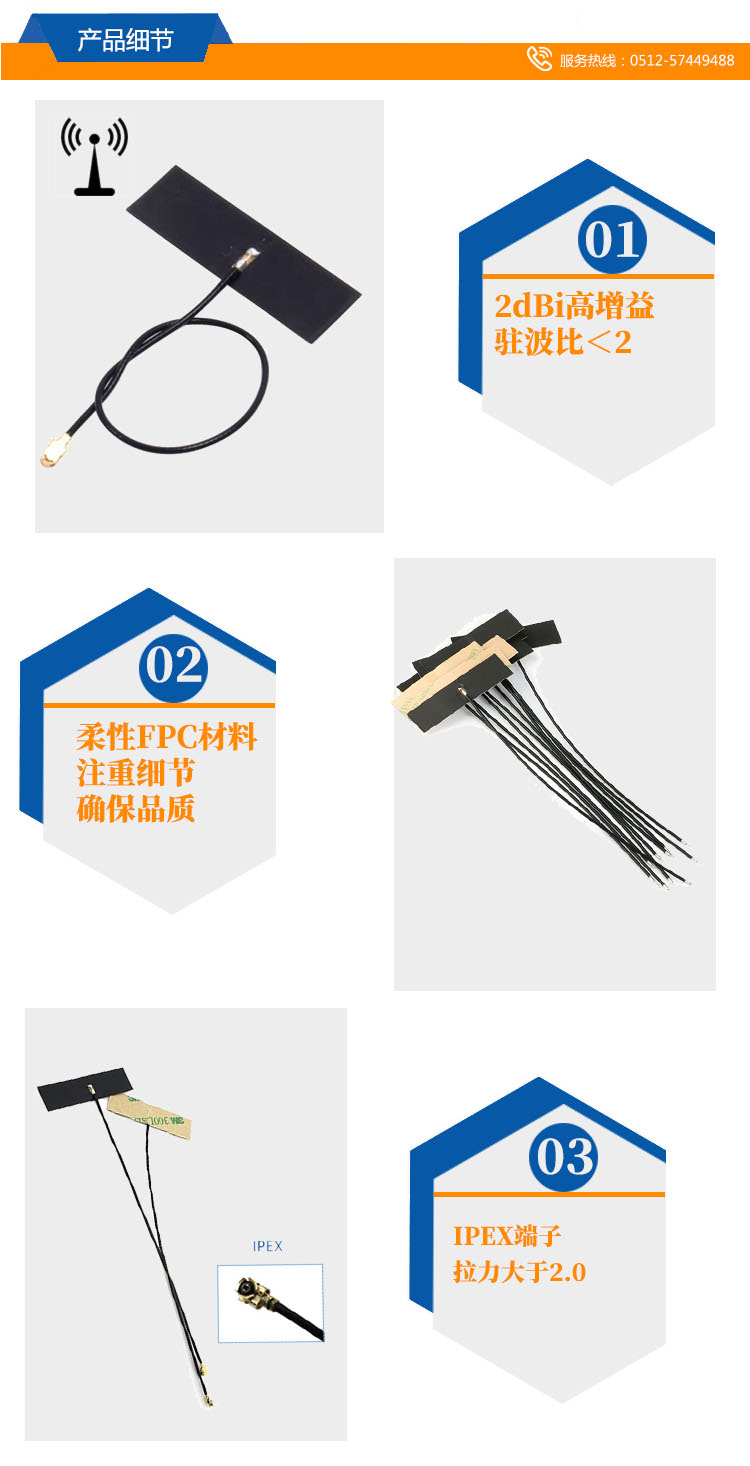 WiFi天線 2.4G內(nèi)置天線 42*12mm FPC天線 IPEX接頭