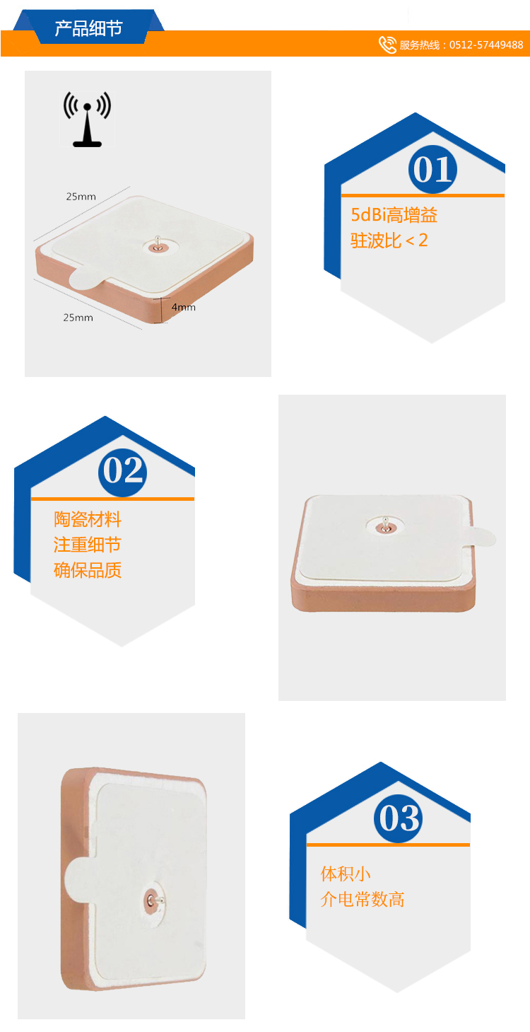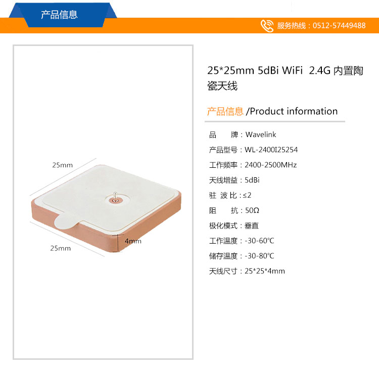 25*25mm 5dBi WiFi 2.4G內(nèi)置陶瓷天線天線