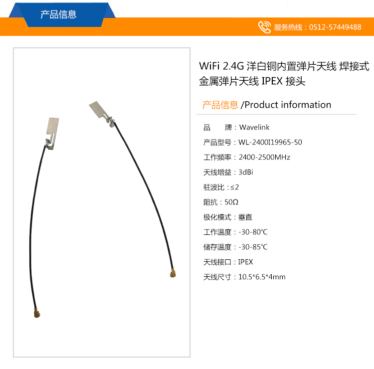 WiFi 2.4G天線 洋白銅內(nèi)置金屬彈片天線 IPEX 接頭