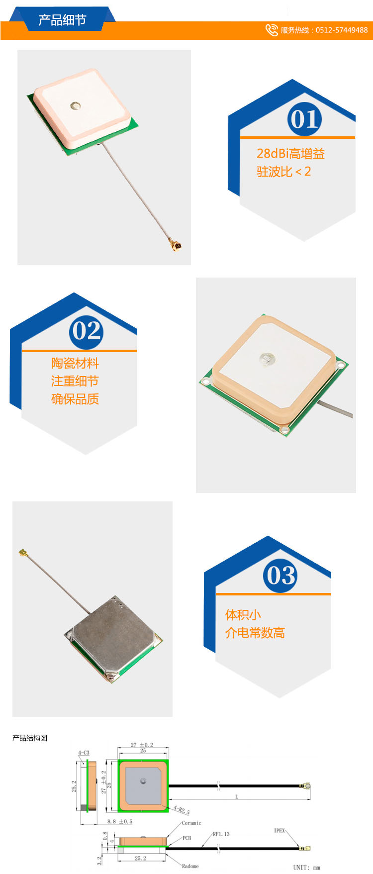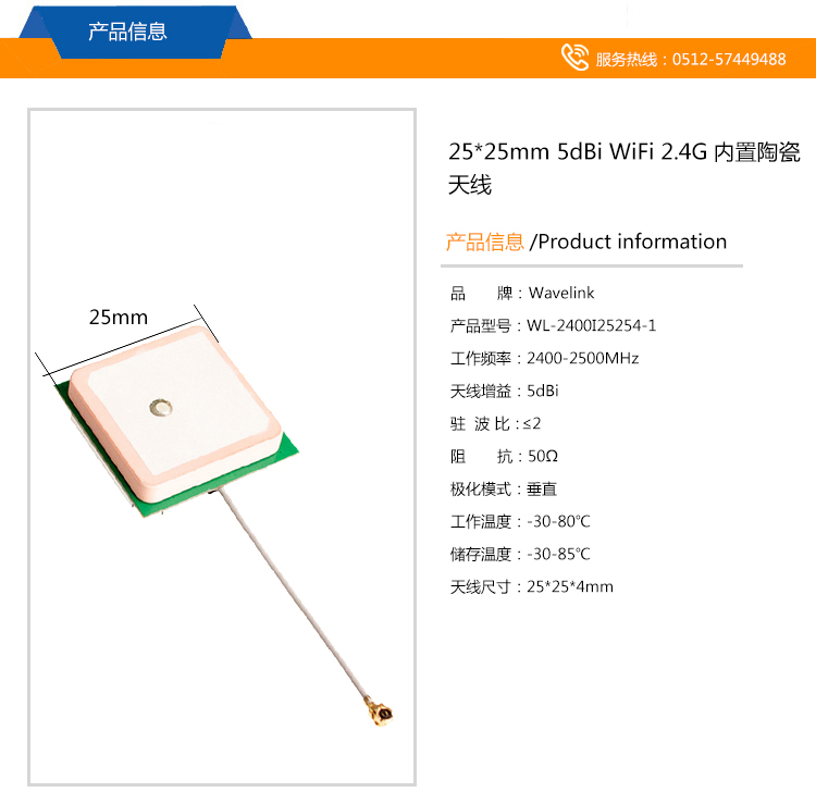 WiFi 2.4G天線 5dBi高增益內(nèi)置陶瓷天線 25*25mm
