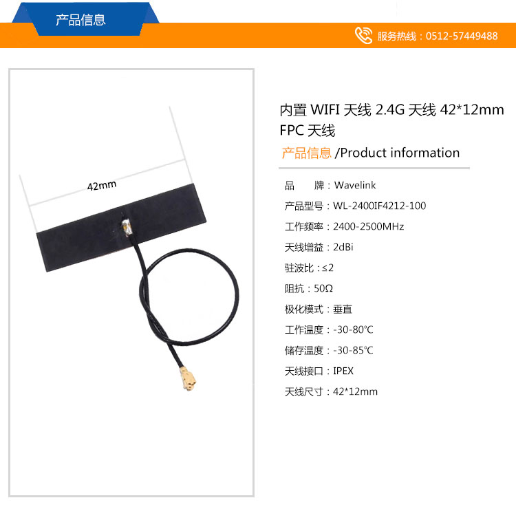 WiFi天線 2.4G內置天線 42*12mm FPC...
