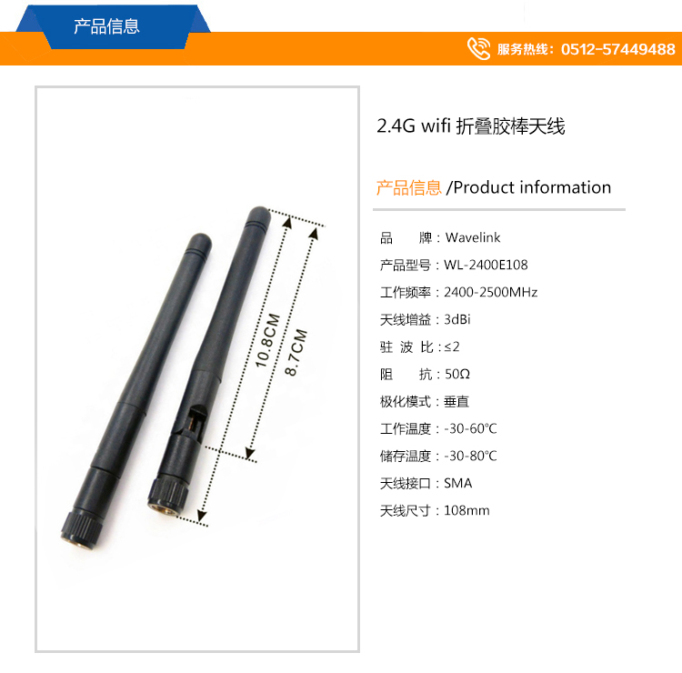 2.增益:3dBi 3.天線長度:108mm 4.連接器型號(hào): SMA" />