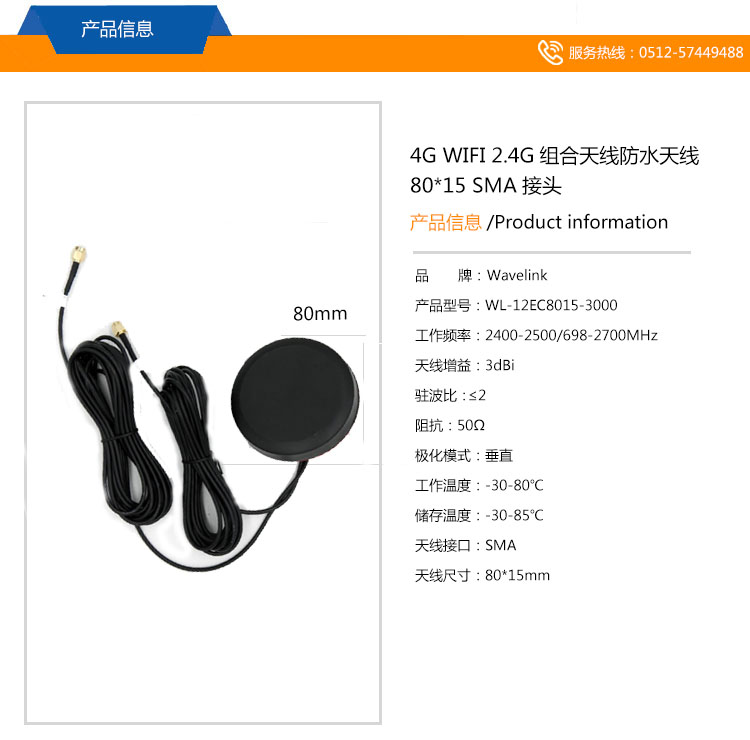 4G/WIFI 2.4G組合天線防水天線 80*15 SMA接頭