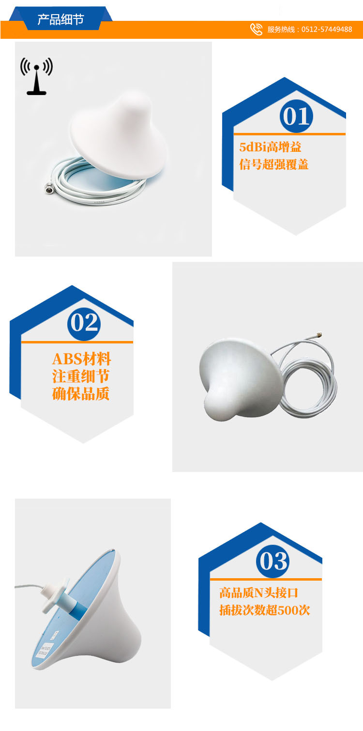 室內(nèi)全向吸頂天線提供360°信號覆蓋范圍,您將獲得最佳信號和最大覆蓋面積。