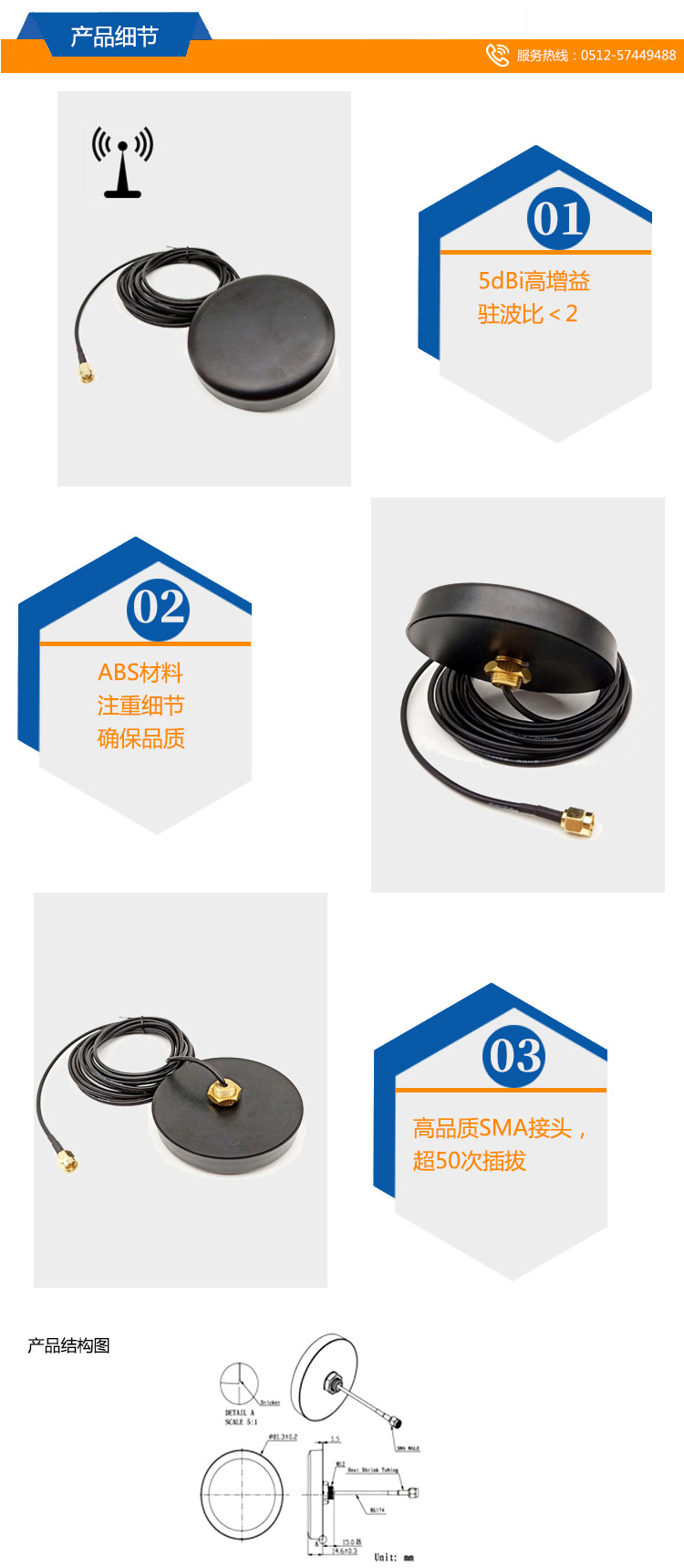 75*45mm 4G天線長菇頭天線室外防水天線 ...