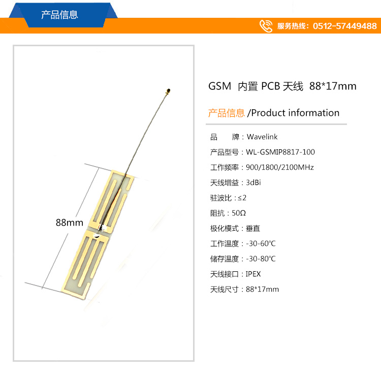 88*17mm GSM內(nèi)置 PCB天線 IPEX接頭