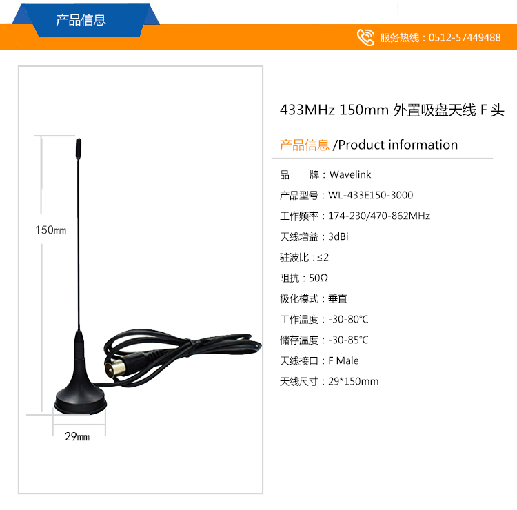 NB-IOT天線 433MHz 3dBi 吸盤天線 29*150mm F頭
