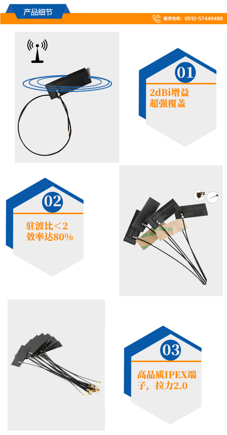 支持移動聯(lián)通電信GSM,3G,4G,CDMA,WCDMA,TDSCDMA頻率 線長接頭(IPEX/焊接頭)可定制 牢固錫焊 易粘貼背膠 RG1.13線柔軟耐折