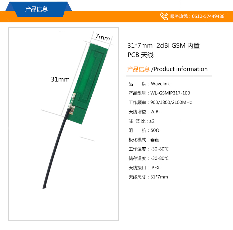 31*7mm NB-IoT天線 2dBi GSM天線 內(nèi)置PCB天線
